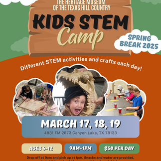 Join us for a Kids STEM Camp! This Spring Break camp will be three days long, Monday-Wednesday, 9:00 AM - 1:00 PM. You can choose to come for just 1 or 2 days or all 3. Tickets are available for both.